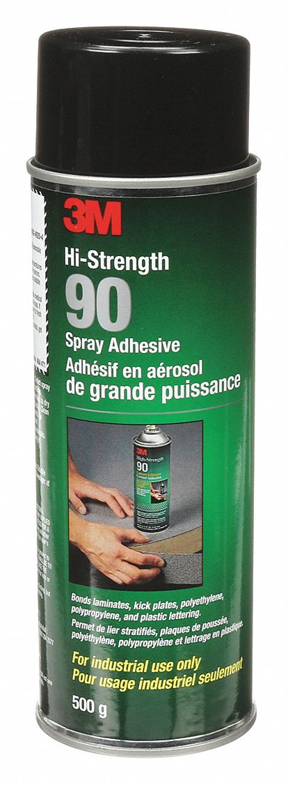 Description 3M Hi-Strength 90 Spray Adhesive - A very strong fast-drying contact-like adhesive 3M Hi-Strength 90 Spray Adhesive is ideal for bonding decorative laminates. One thing about the 90 that I havent seen in any other spray glue is the spray pattern. From OEM to on-site construction fabrication 3M has spray adhesives for bonding to metal high-pressure laminate HPL plastic insulation foam fabric wood medium density fibreboard MDF and a wide range of other substrates.