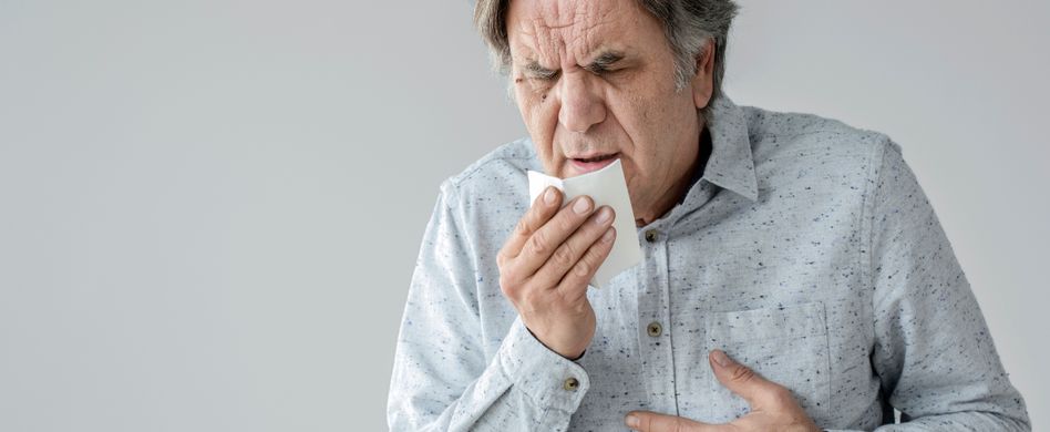 Grüner Auswurf beim Husten kann ein Hinweis auf eine Pseudomonas-Infektion sein.